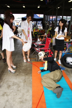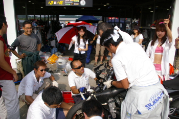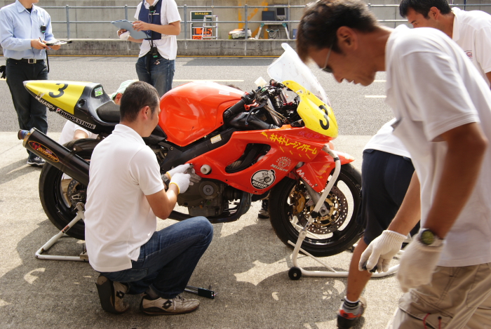 炎天下の中、メカニックの方々による修復作業が始まります。